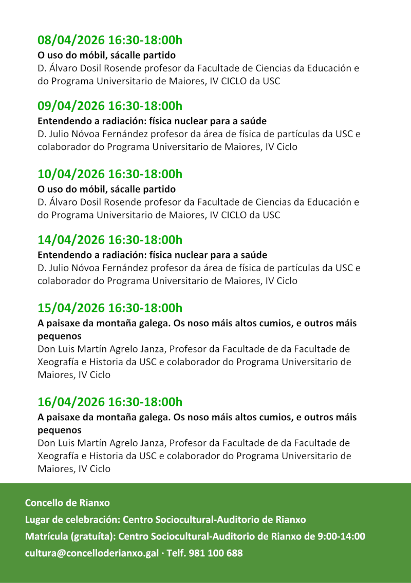 Apertura do prazo de inscrición para o Concello de Rianxo - Camiños de coñecemento e experiencia, IV Ciclo programa universitario de maiores - Concello de Rianxo