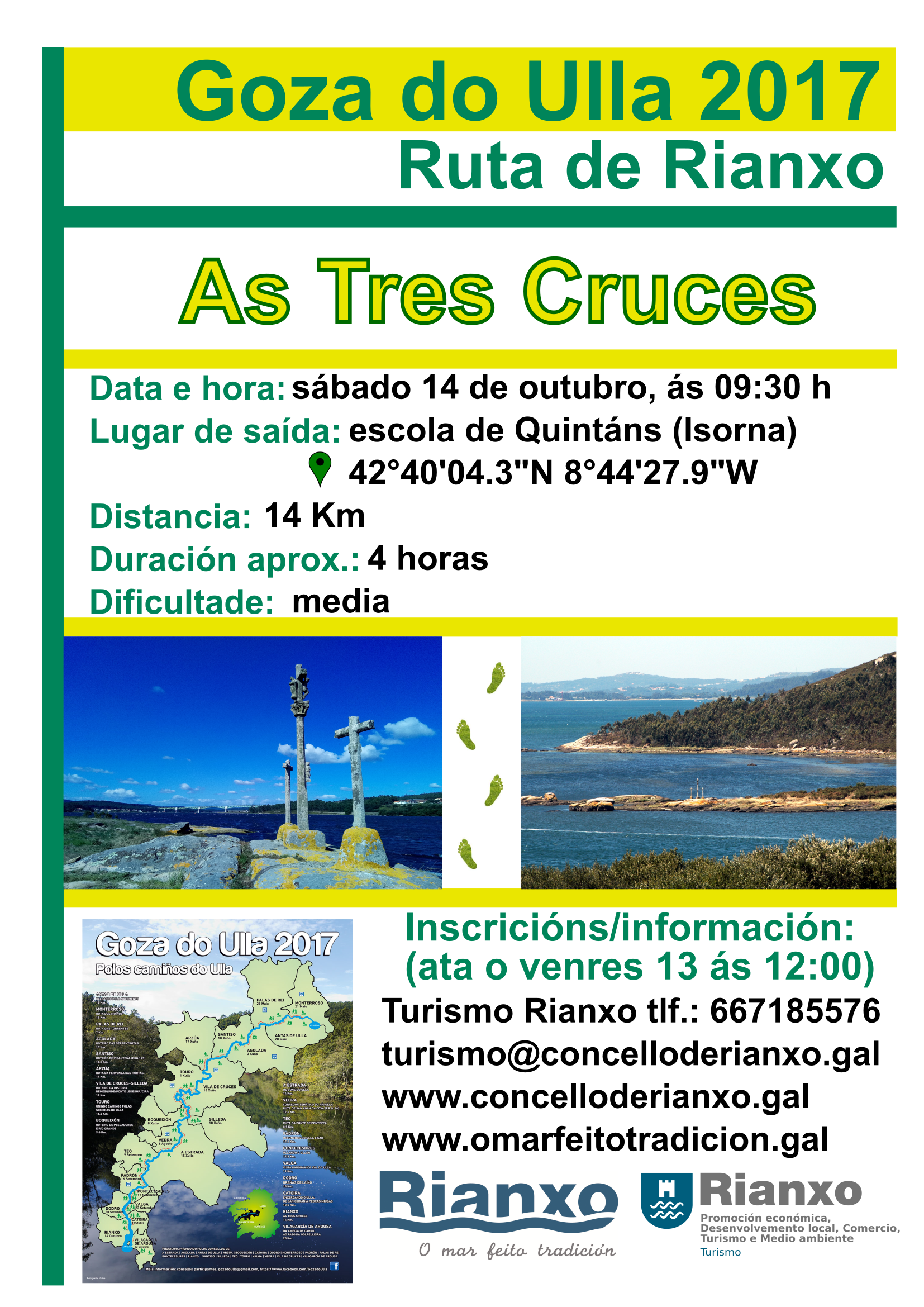 O Concello de Rianxo organiza a ruta de sendeirismo "As Tres Cruces", dentro do programa Goza do Ulla 2017, o sábado 14 de outubro.
