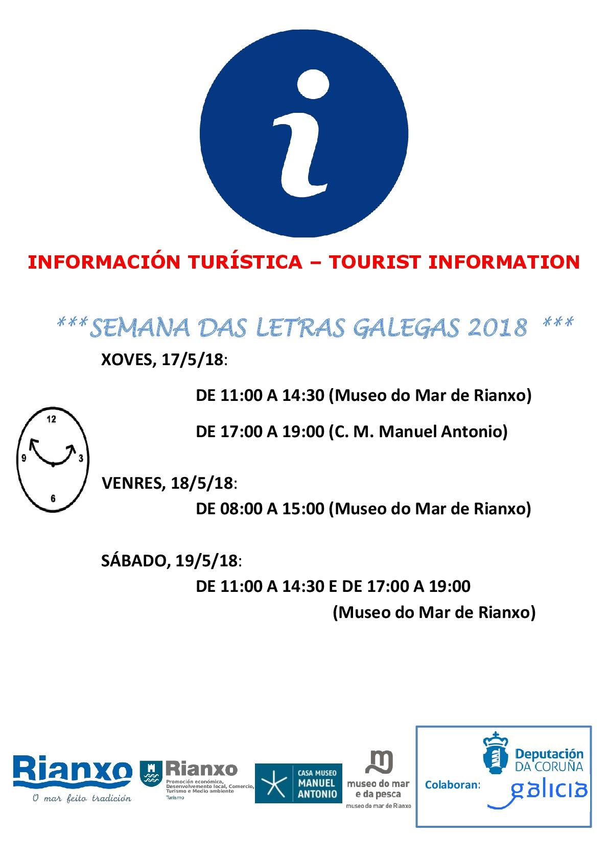 - Horarios de información turística - Semana das Letras Galegas - Concello de Rianxo