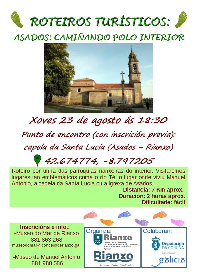 Continuamos coa cuarta destas rutas guiadas, que terá lugar o xoves, 23 de agosto: Asados; camiñando polo interior. Para participar, cómpre anotarse nos puntos de información turística.