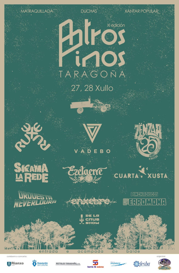 Polo escenario do festival pasarán grupos galegos e de fóra da talla de Ruxe Ruxe, Vadebo, Skama La Rede, Ezetaerre, Orquesta Neverloura, Enxebre, Pinchadiscos e De La Cruz Show. Na noite do venres, actuarán Cuarta Xusta no Bar Confort e Zënzar e Ferromona no Curral do Marqués.